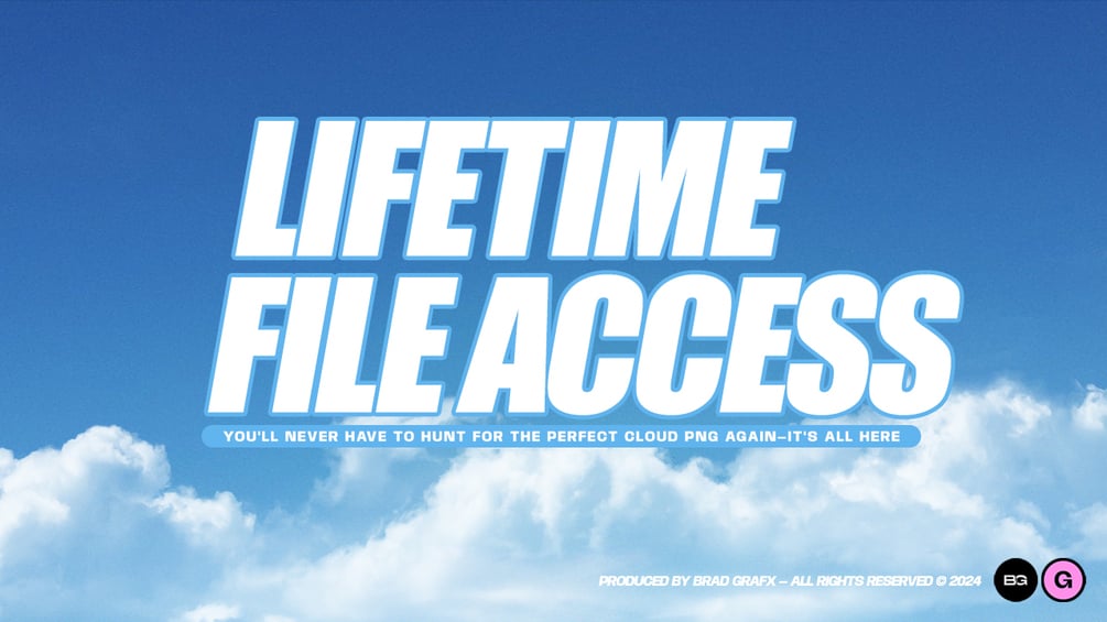 Introducing the Clouds Texture and Overlay Pack! Dive into a collection of 4K High-Definition cloud overlays, perfect for adding a touch of atmosphere to any graphic design project. Whether you're working on a personal piece or a commercial endeavor, this pack offers a range of stunning, realistic cloud textures that can seamlessly enhance your visuals. Plus, with lifetime access to the files, you'll never have to hunt for the perfect cloud PNG again—it's all here, ready whenever inspiration strikes. Enjoy ultimate creative freedom with this versatile, easy-to-use overlay pack, and let your designs reach new heights!
